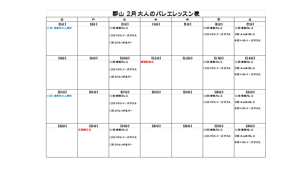 2月大人レッスン表